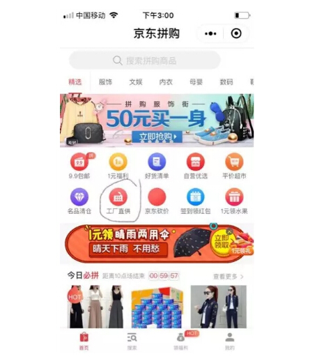 把不同品类的工厂商品聚合到京东拼购上,设立单独的频道入口,吸引商家通过开旗舰店或拼购店的方式入驻,这似乎是京东在拼购平台上又做的一个流量入口——工厂商家的聚合平台。